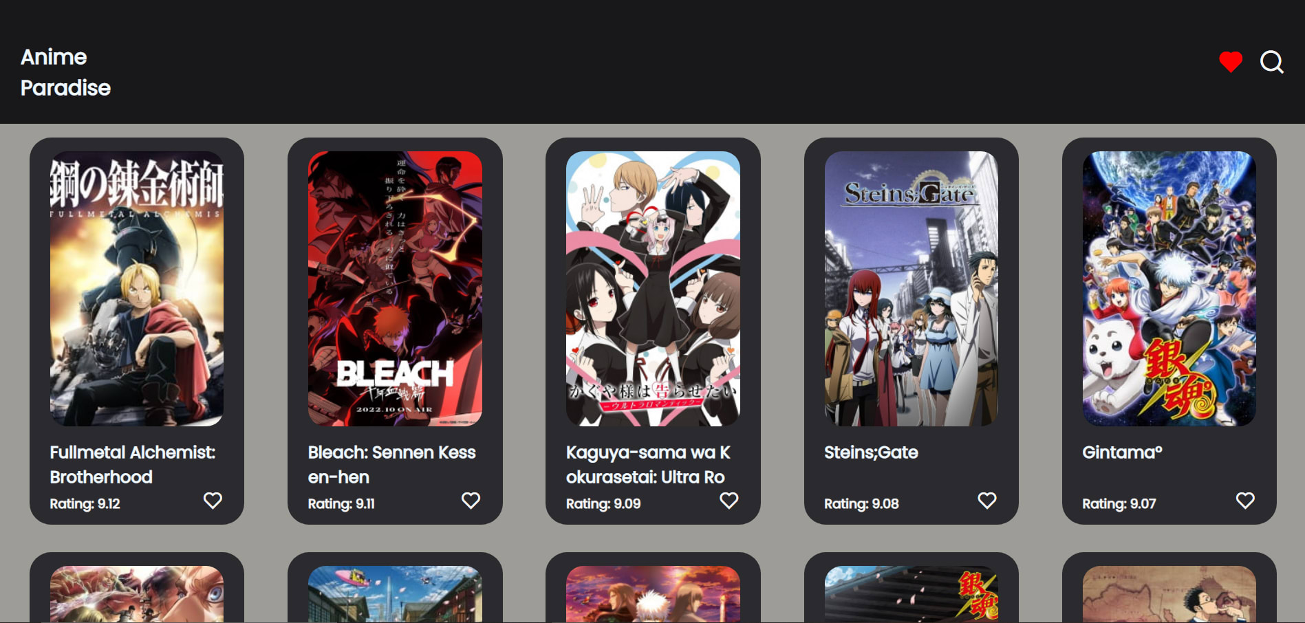 It's a site which shows you current trending anime made from React. Also, you can add your favourite anime to watchlist.