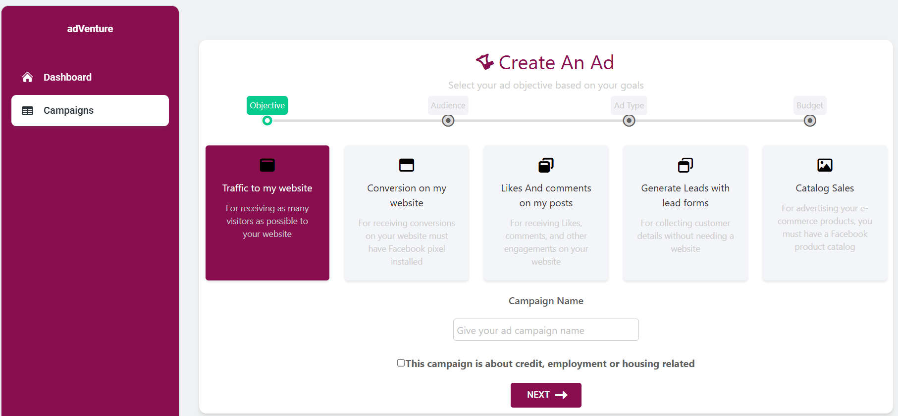 Founder: adVentureA SaaS platform to optimize the creation of an ad on Facebook.