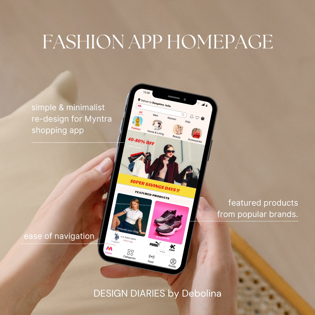 This project is a minimalist reinterpretation of a part of Myntra’s home screen.