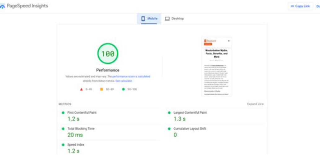 79% reduction in mobile page load time, achieving a perfect 100% performance score on Google PageSpeed Insights.