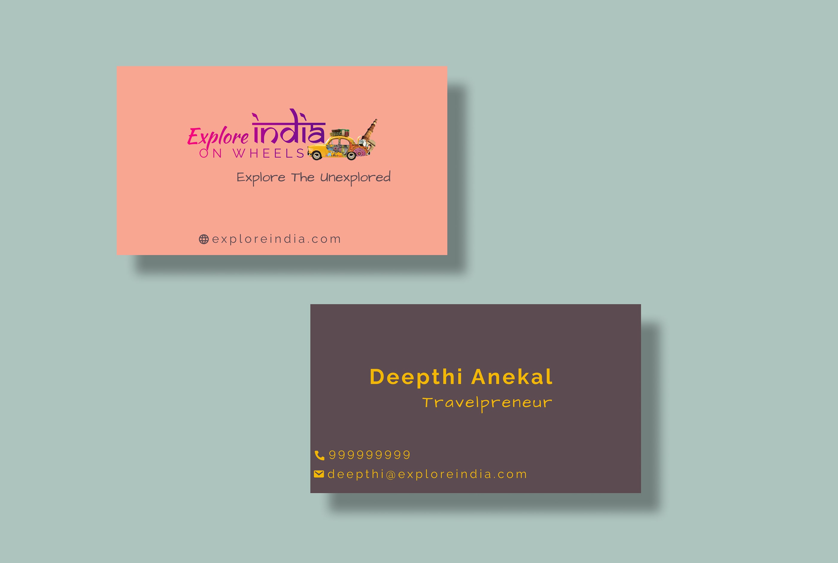 This Project includes Business Card for a fictional Travel Company Explore India on Wheels.