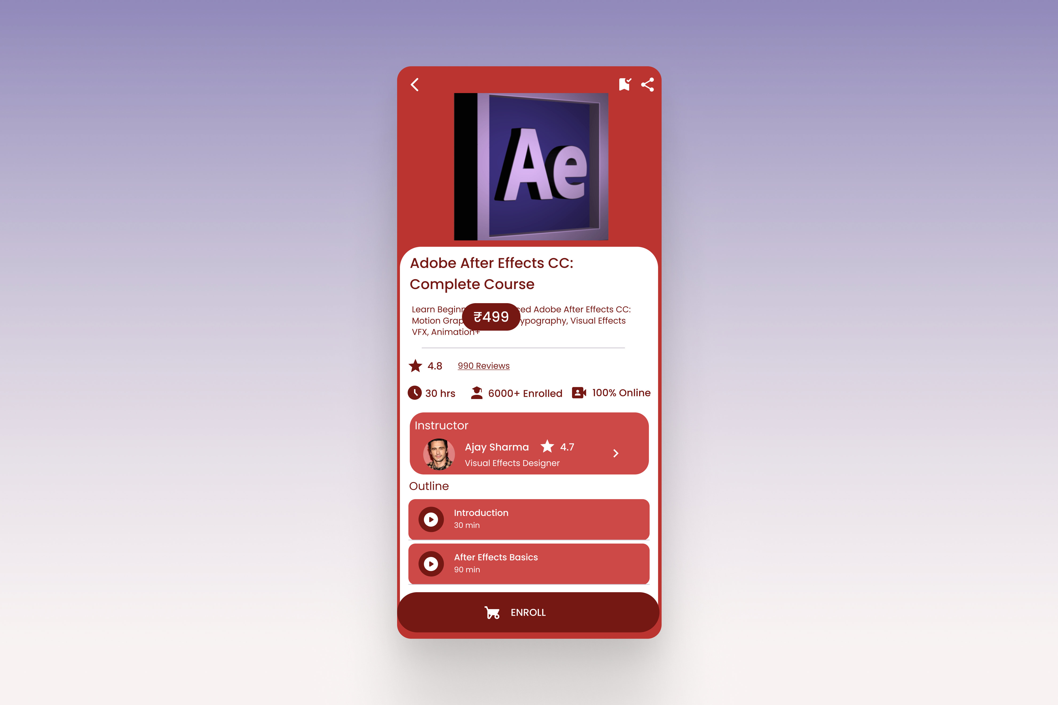 The Challenge - Design a course detail screen for an e-learning app by using the given colour palette.