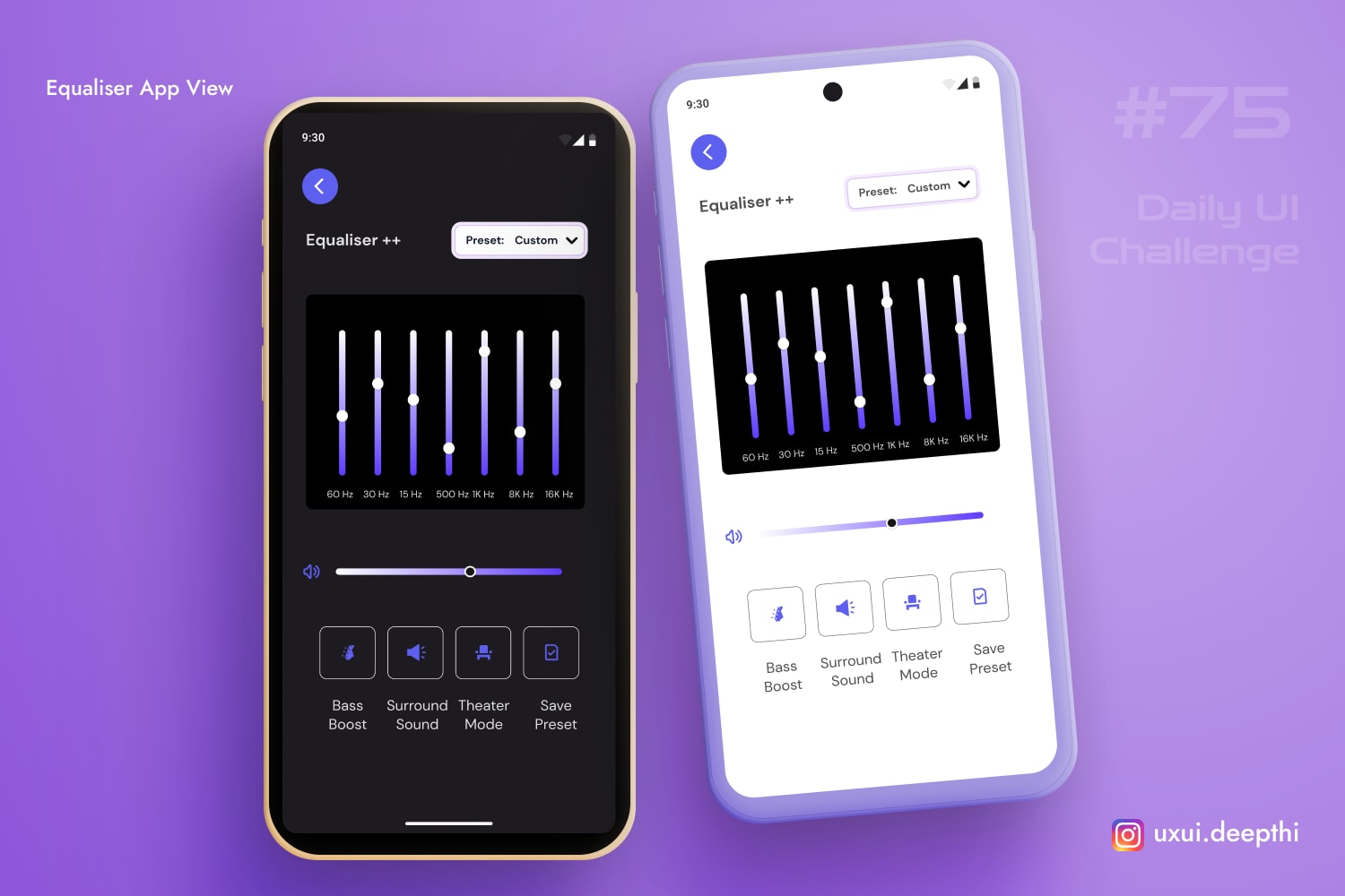 Brief - Design an equaliser app screen with save and other options