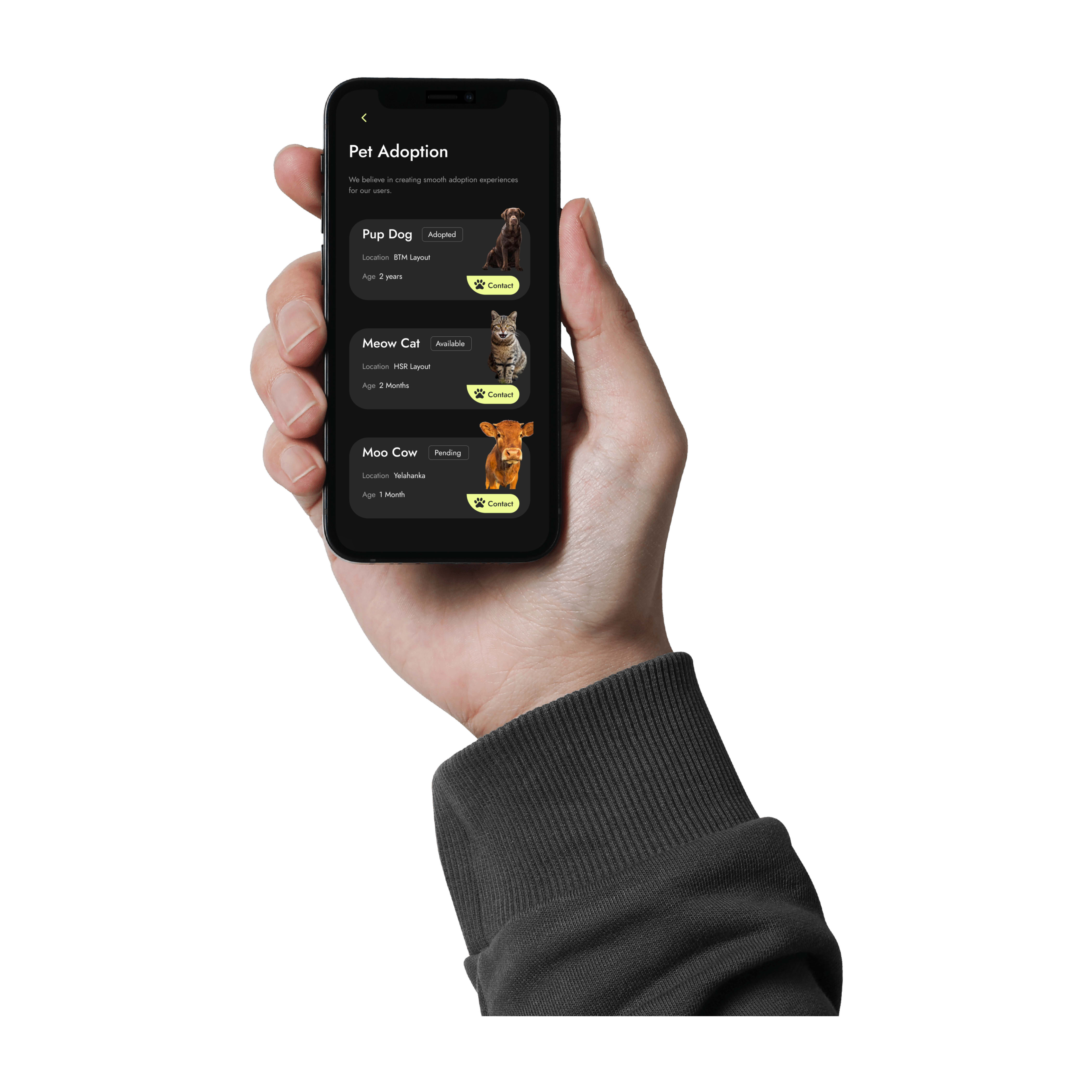 Pet Adoption Screen UI | Dark Mode