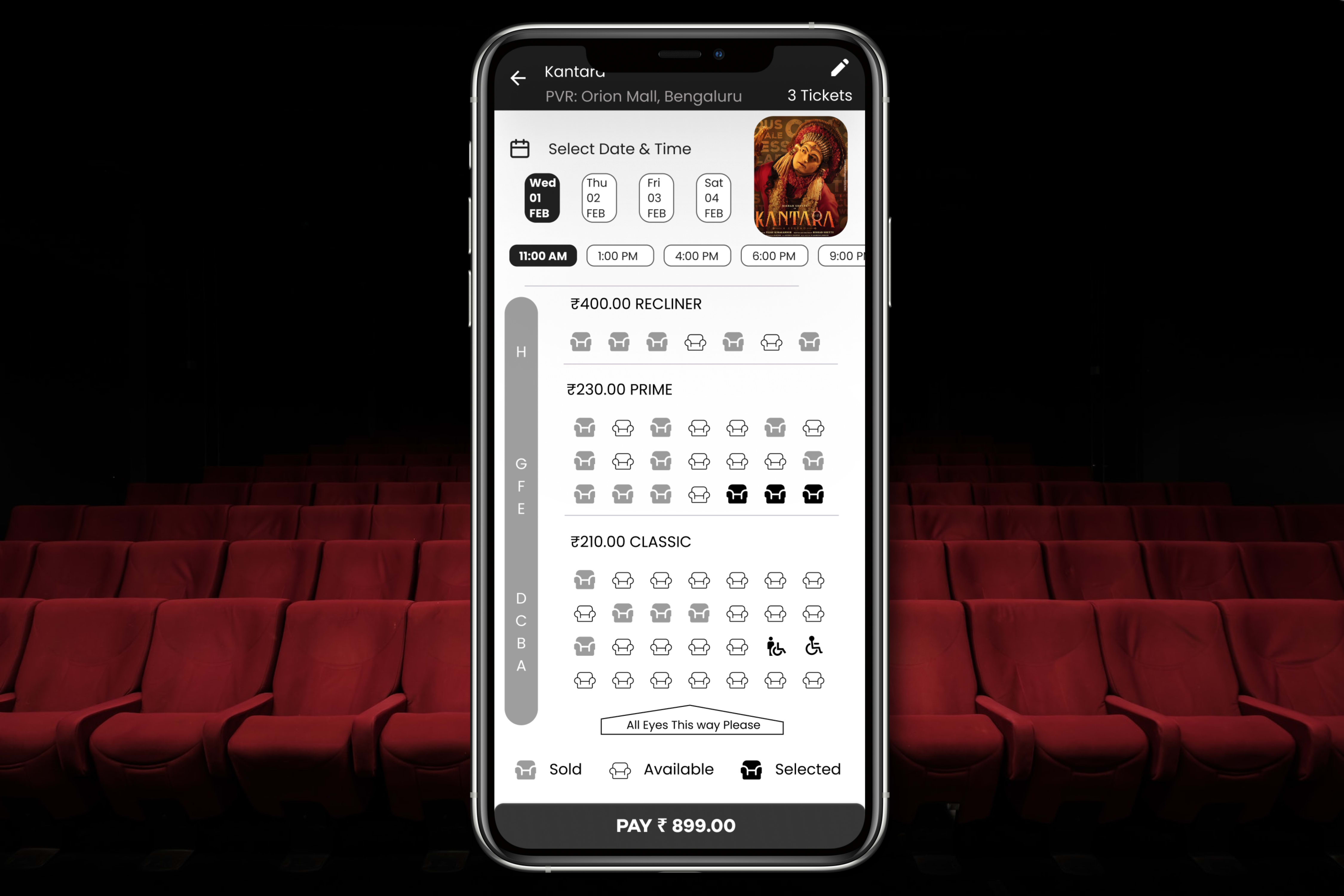 The Challenge - Create a seat selection screen for the movie ticket booking app that only uses black and white colours as its colour palettes.