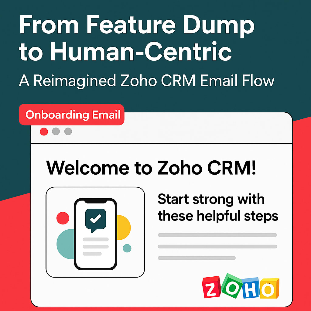 Let’s face it. No one reads long, jargon-filled onboarding emails anymore. So, I reimagined the Zoho CRM onboarding flow with one goal: clarity that connects.