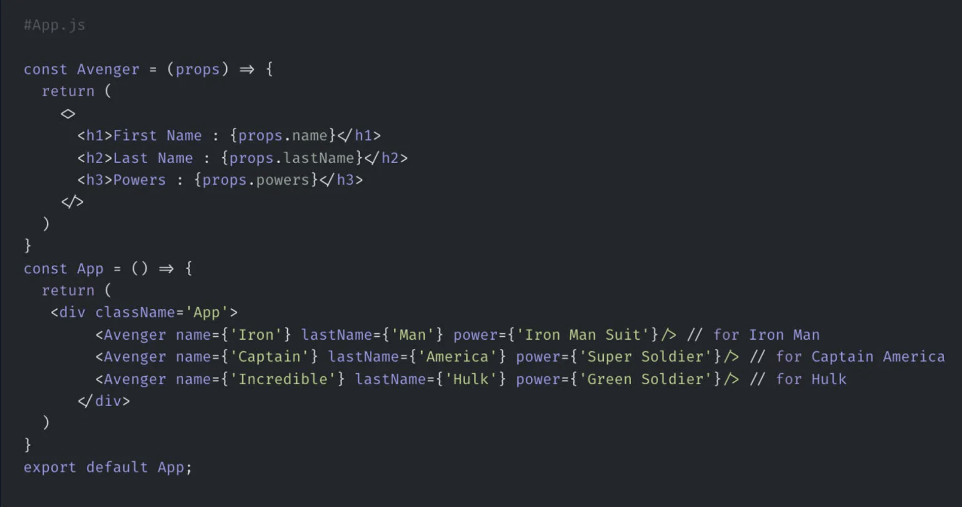 Passing dynamic data through React components using Props.