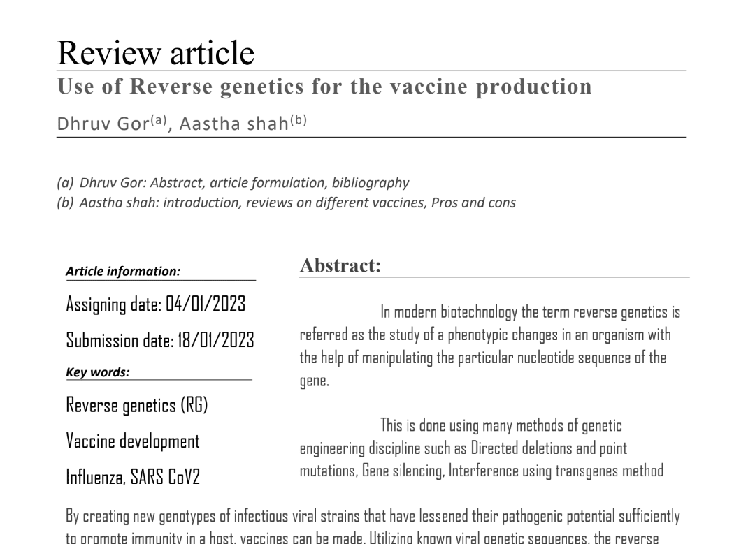 Here I am sharing with you an example of my educational/research writing with a POW of a review on how exactly reverse genetics is used for the production of different vaccines.