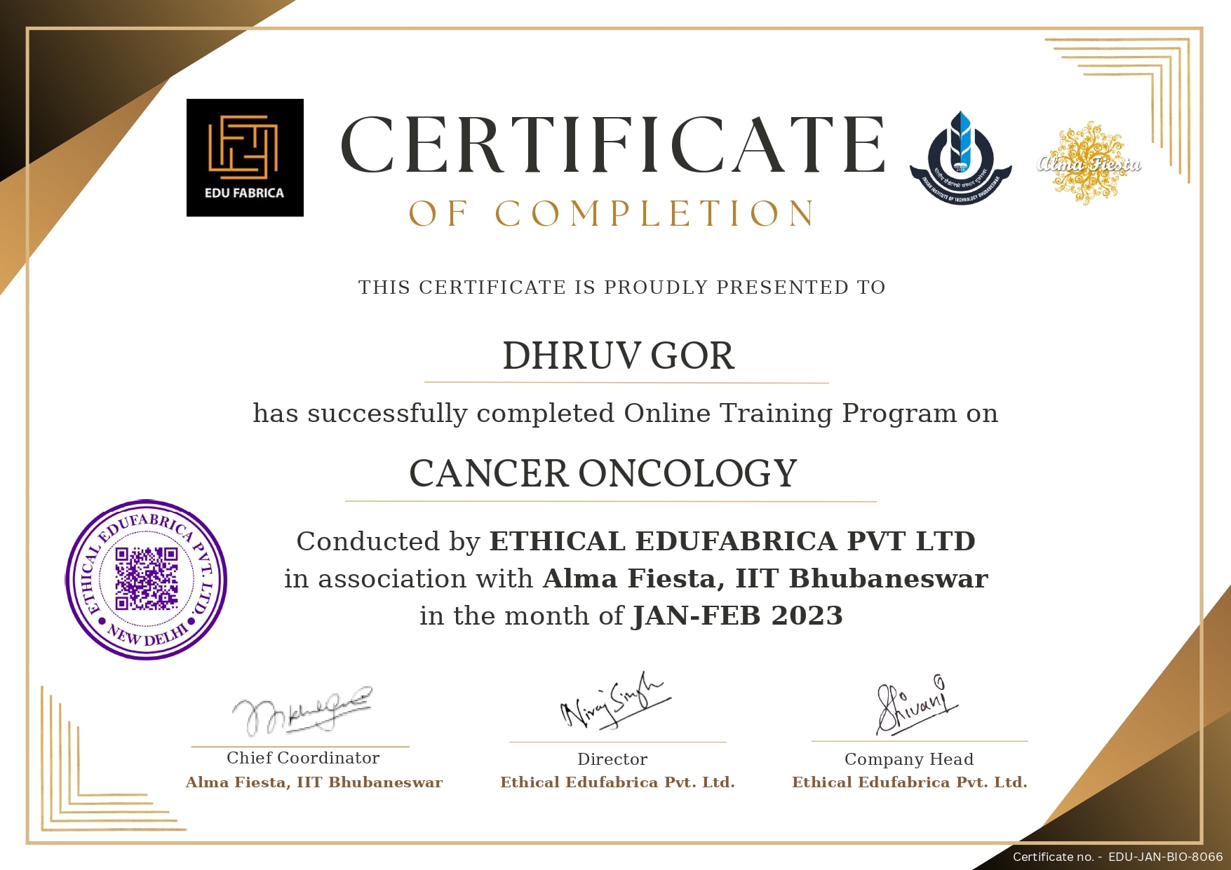 Overall, my internship at IIT Bhubaneswar in Cancer Oncology provided me with invaluable experiences, knowledge, and skills that have further fueled my passion for cancer research and contributed to my professional growth in the field.