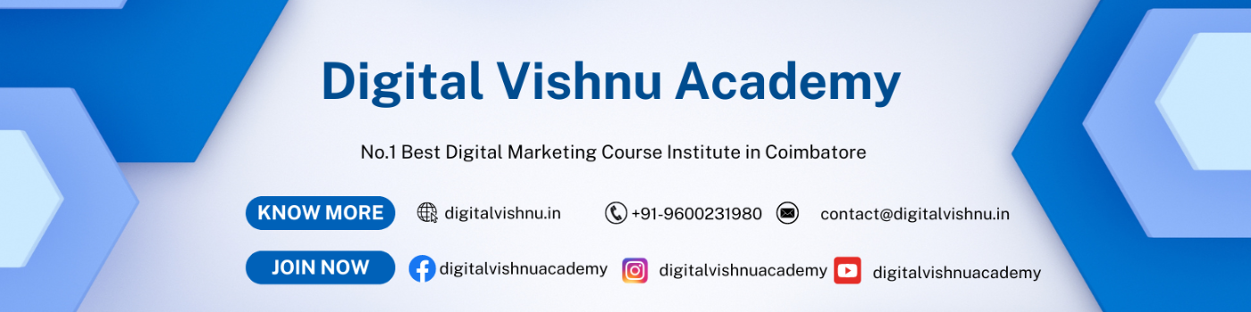 Digital Vishnu Academy is the No.1 Digital Marketing Training Institute in Coimbatore. We are well-known in the internet marketing field and our hands-on approach training