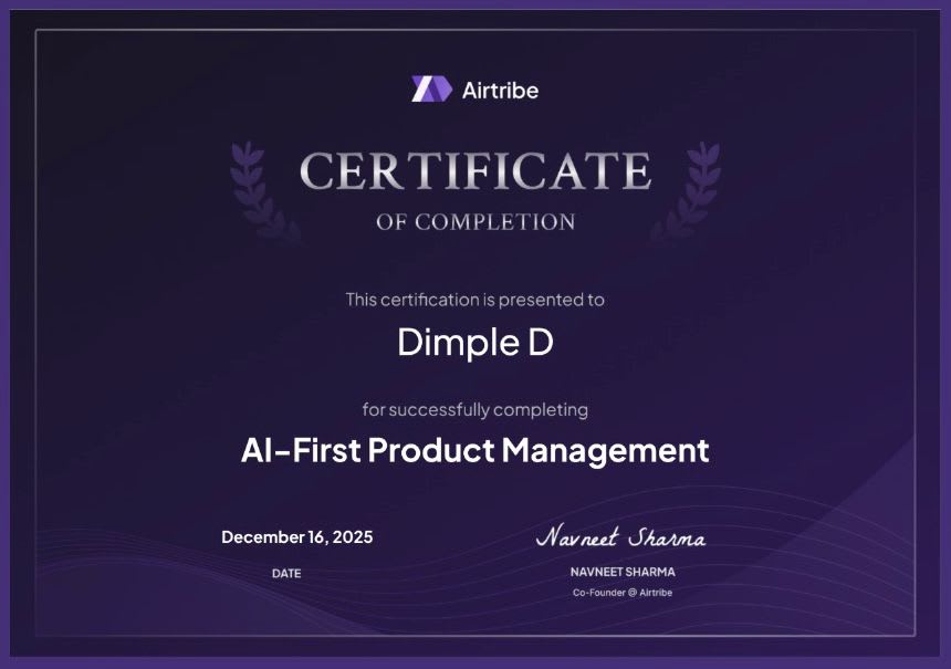 After 4 years in the QA industry, I felt a strong pull to step outside my comfort zone and explore something new. That curiosity led me to complete Airtribe’s Product Management Launchpad Program, a journey that pushed me to think critically, learn, and refine my approach to problem-solving.
