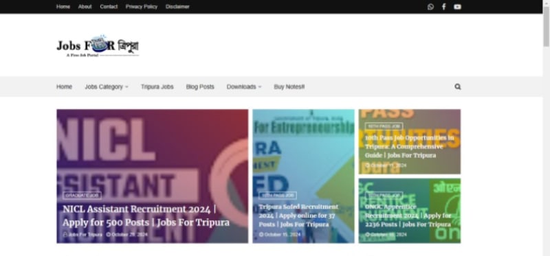 Built a JobPortal (Job Posting Site) using HTML, CSS & JavaScript for Tripura state's students and student can also buy notes from this portal.