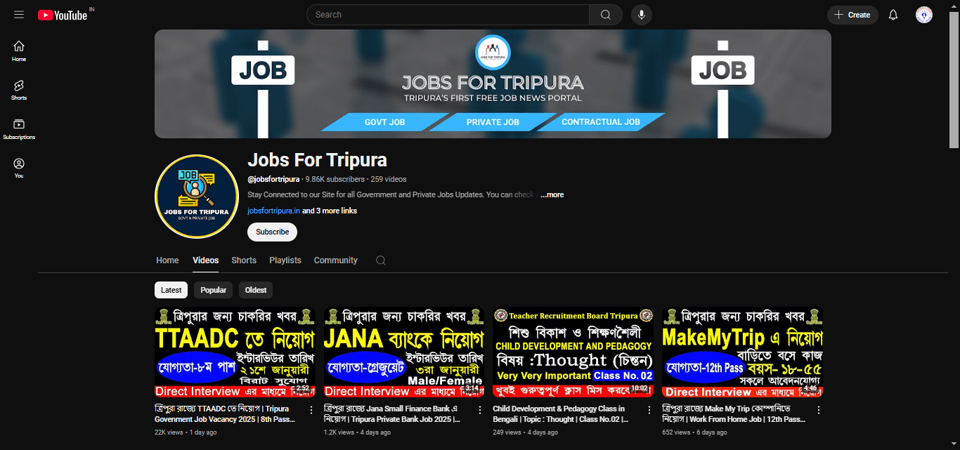 This Channel is dedicated to all Job Aspirants of Tripura. Here we upload all Job notifications videos regularly
