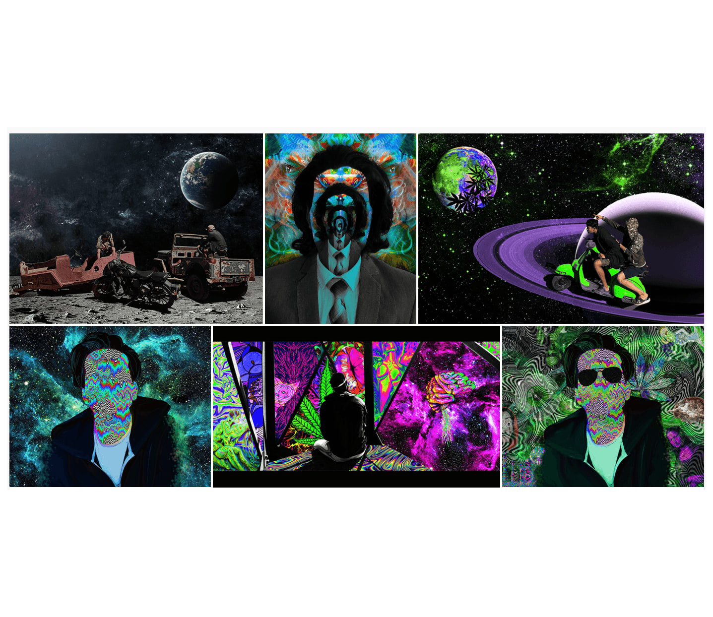 Created a series of surreal, psychedelic visual artworks through photo manipulation techniques, reimagining ordinary photographs into alternate, mind-bending dimensions. This project combined image layering, vivid color treatments, abstract patterns, and digital effects to craft immersive, thought-provoking visuals.