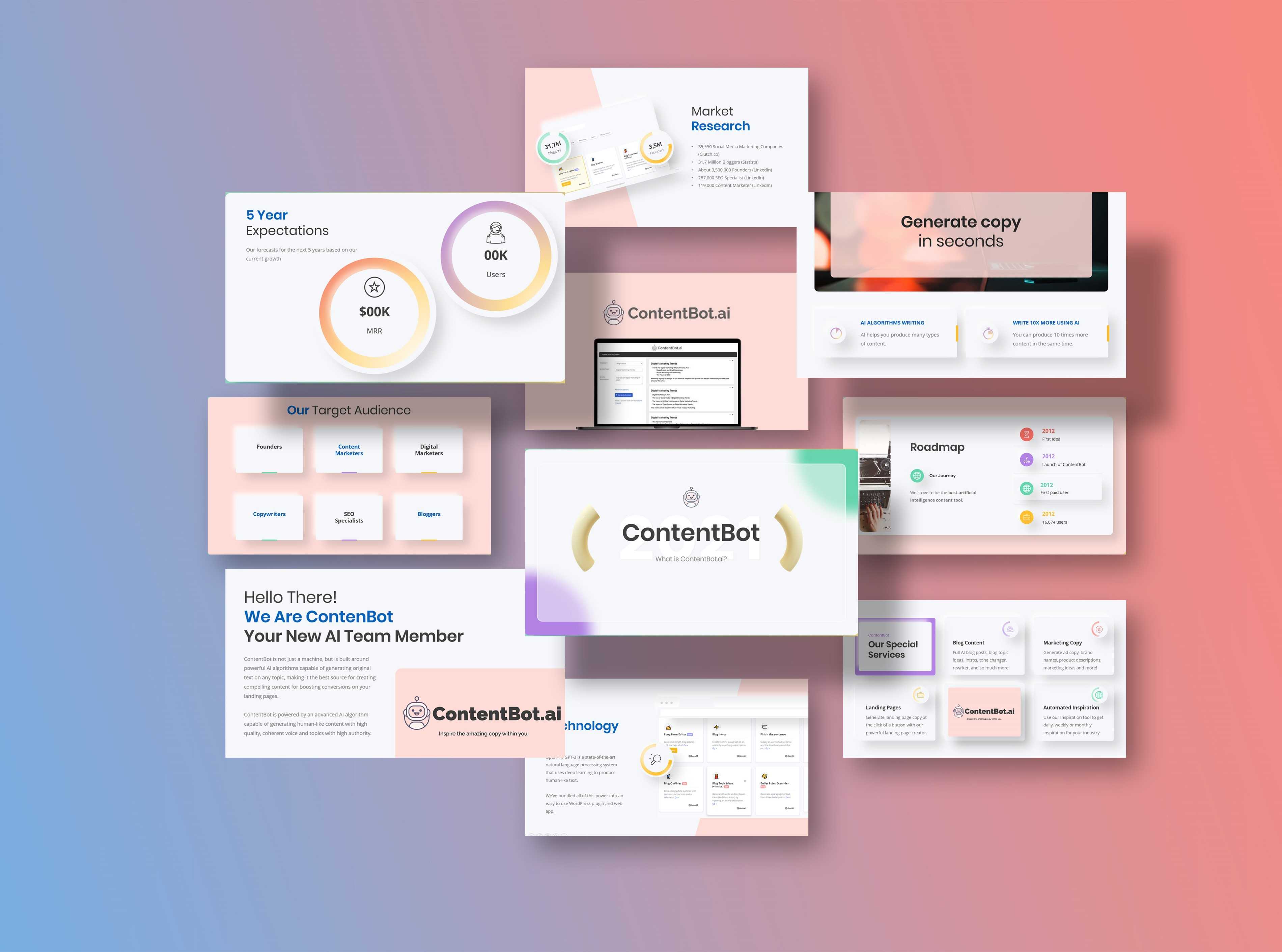 ContentBot.ai is an AI text generation tool. They needed a professional pitch deck to use at investor meetings. They weren't sure what to say. They were confused about what information was valuable to investors.