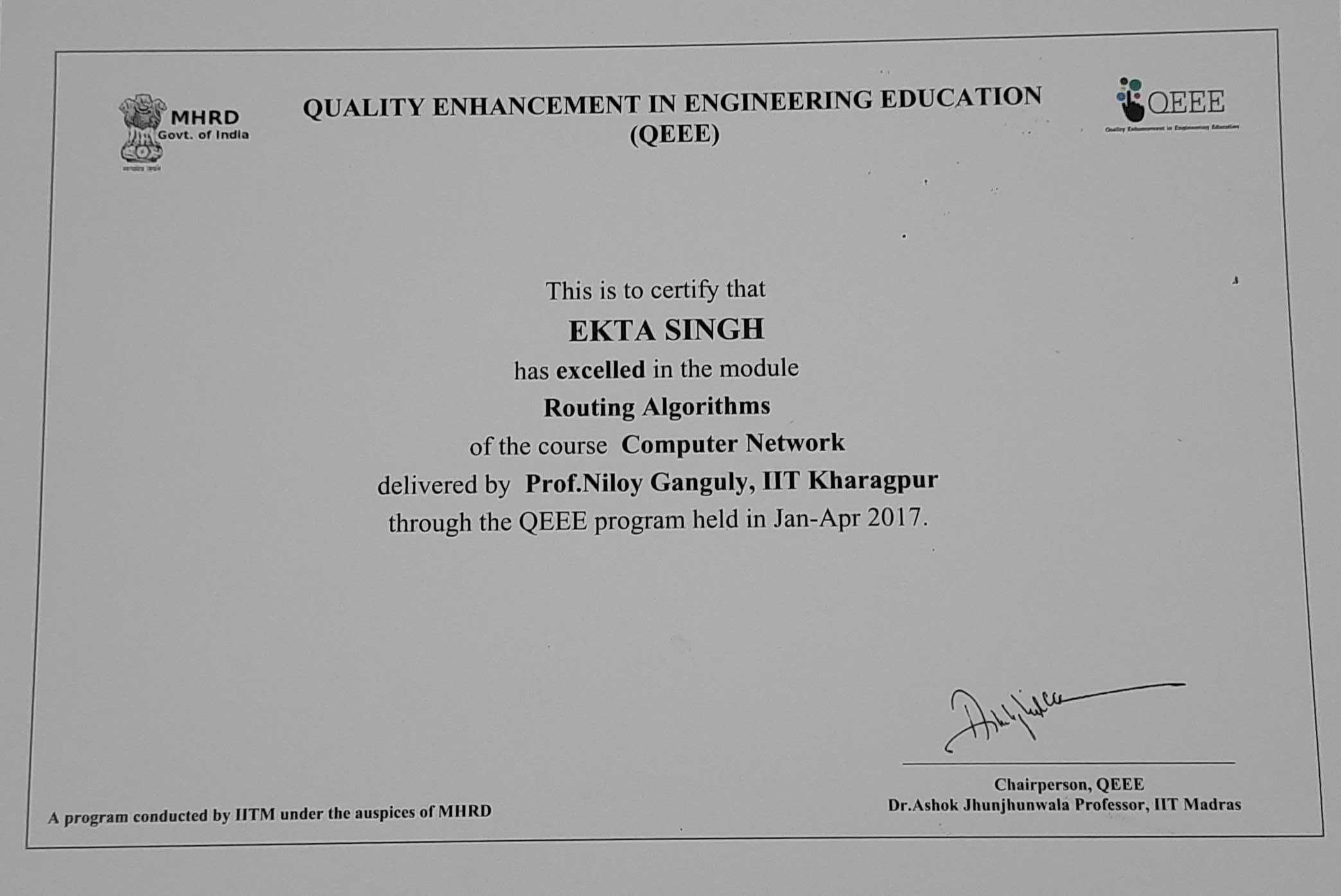 Routing Algorithms Course Completion
