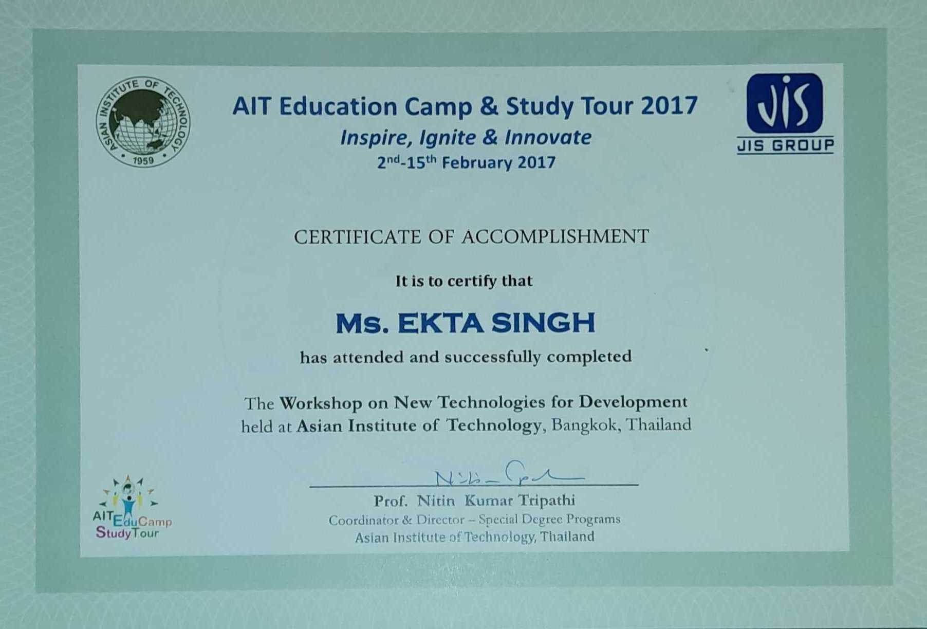 attended 15 days workshop on new technologies organized by the Asian Insitute of Technology,Bangkok Thailand.