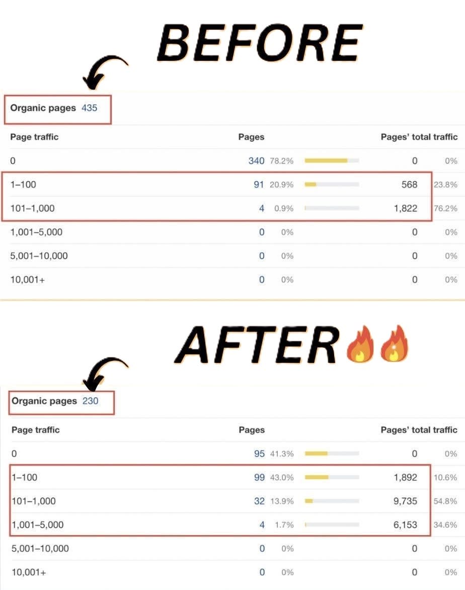 More than 700% increase in the number of pages getting more than 100 organic clicks per month.