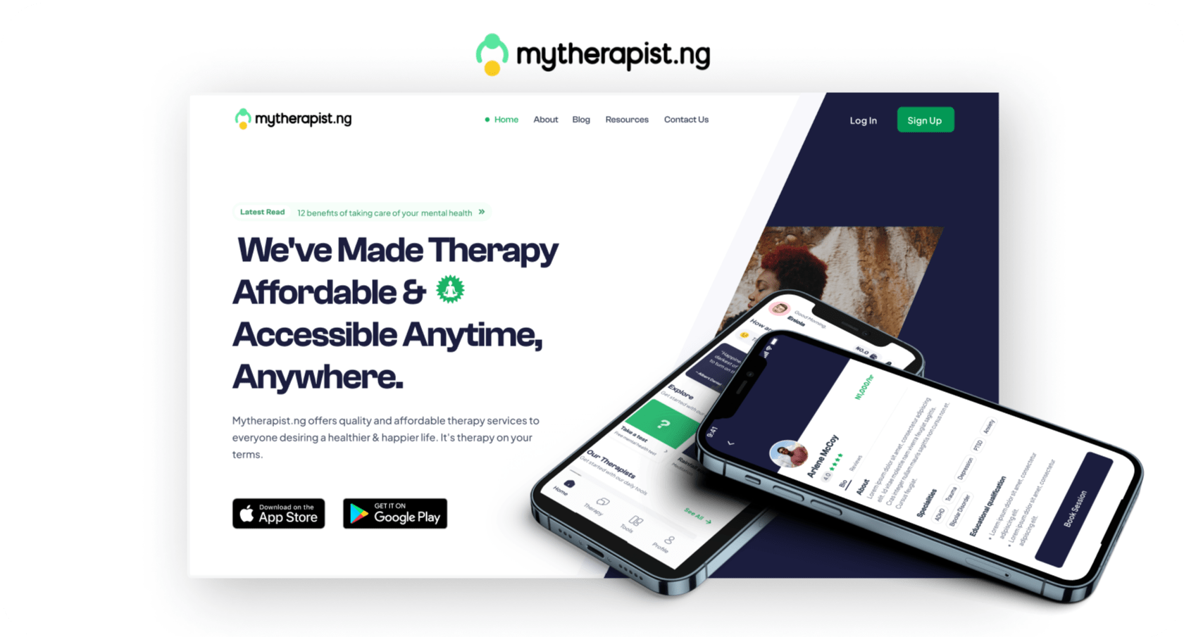 Mytherapist.ng is a company that aims to make catering to the mental health of Africans more affordable. Their main product is a mobile application that connects individuals to therapists. Users can therefore book therapy sessions and get help.