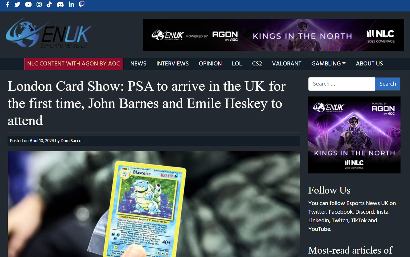 The industry-leading grading and authentication service, Professional Sports Authenticator (PSA), is offering take home services at the London Card Show (cards only).