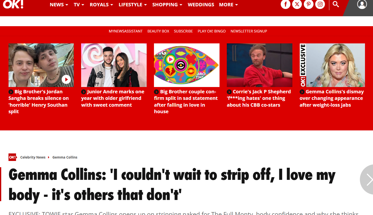 Gemma Collins: 'I couldn't wait to strip off, I love my body - it's others that don't'