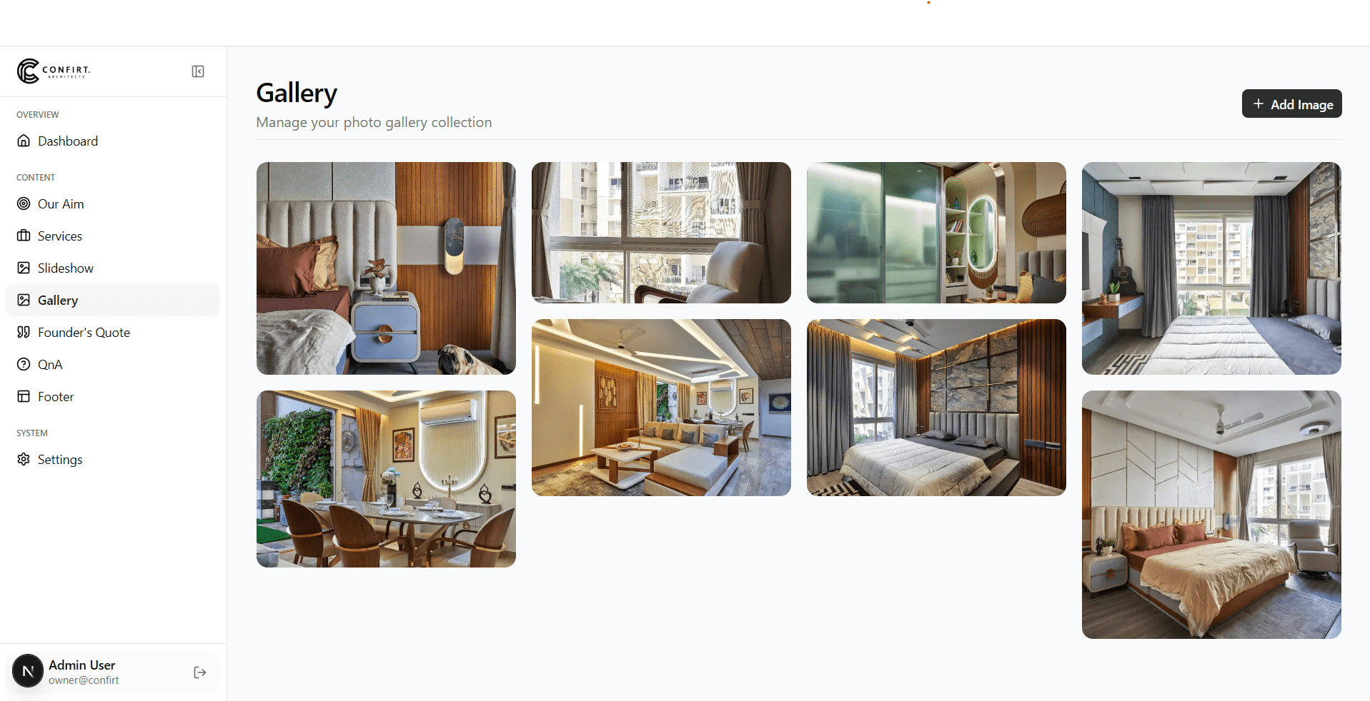 • Currently developing a secure and dynamic admin dashboard for managing website content, including project galleries and service sections.