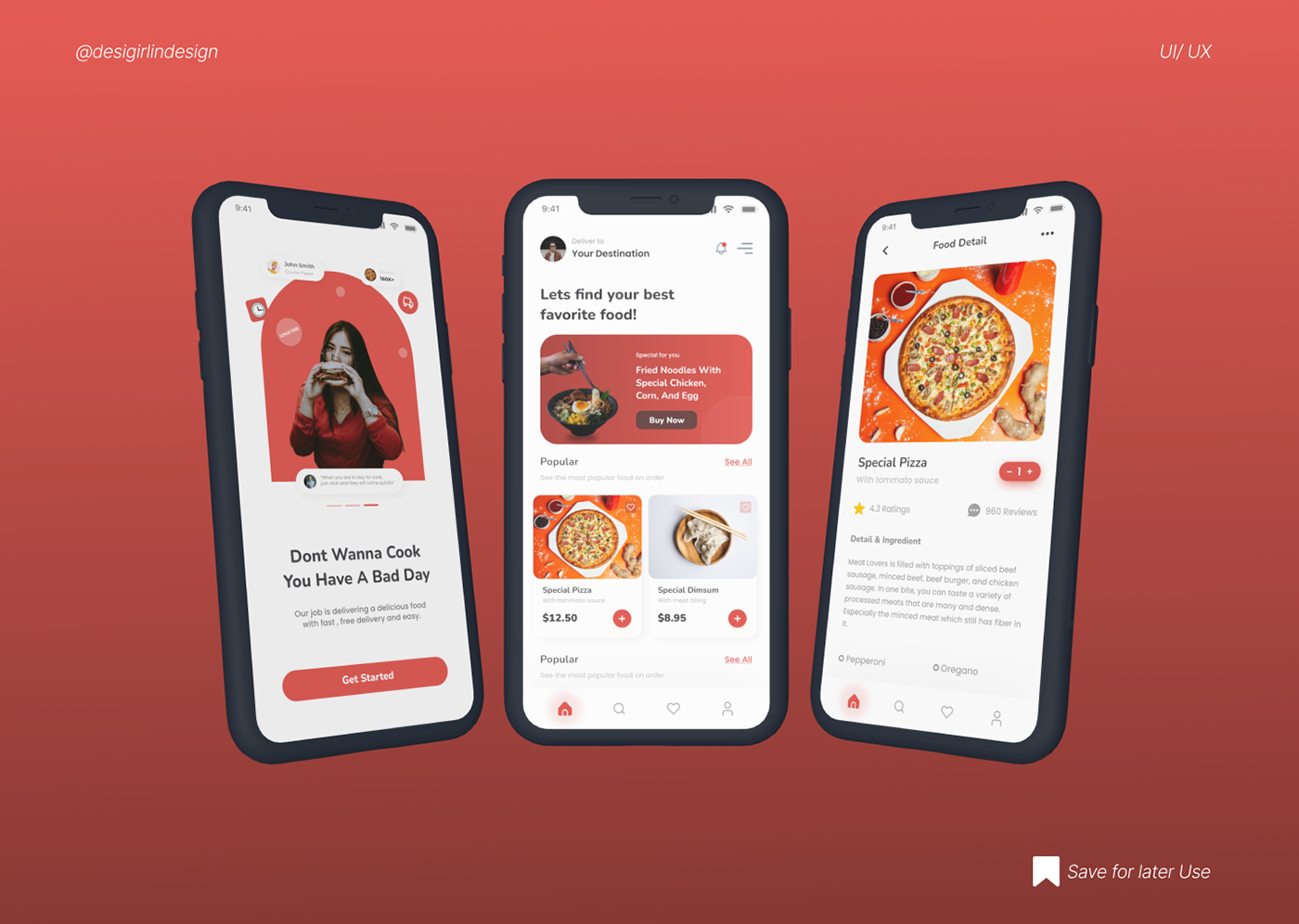 I took the daily UI design challenge to give my visual design and interface design skills more thorough practice. And this is a design for a food app.
