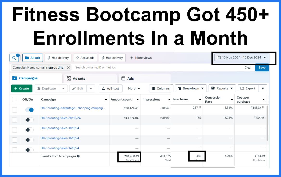 Here's how we got 450+ Enrollments for a Newly Launched Fitness Bootcamp In a Month