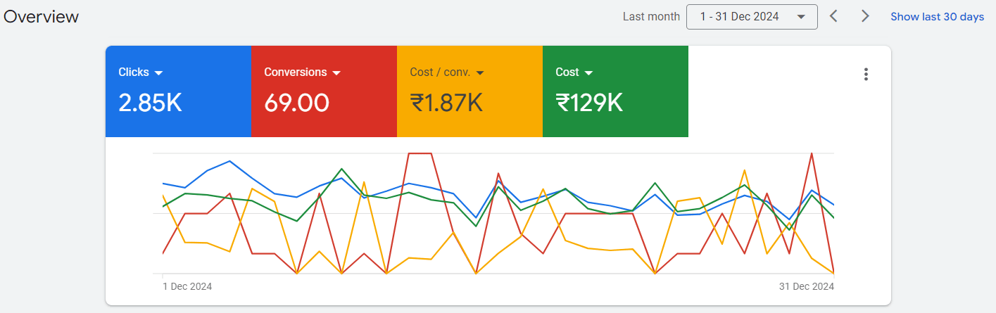This Google Ads campaign in the education niche achieved remarkable results, generating a significant return on investment (ROI). With an initial investment of ₹129,000, the campaign yielded a substantial revenue of ₹38,000,000.