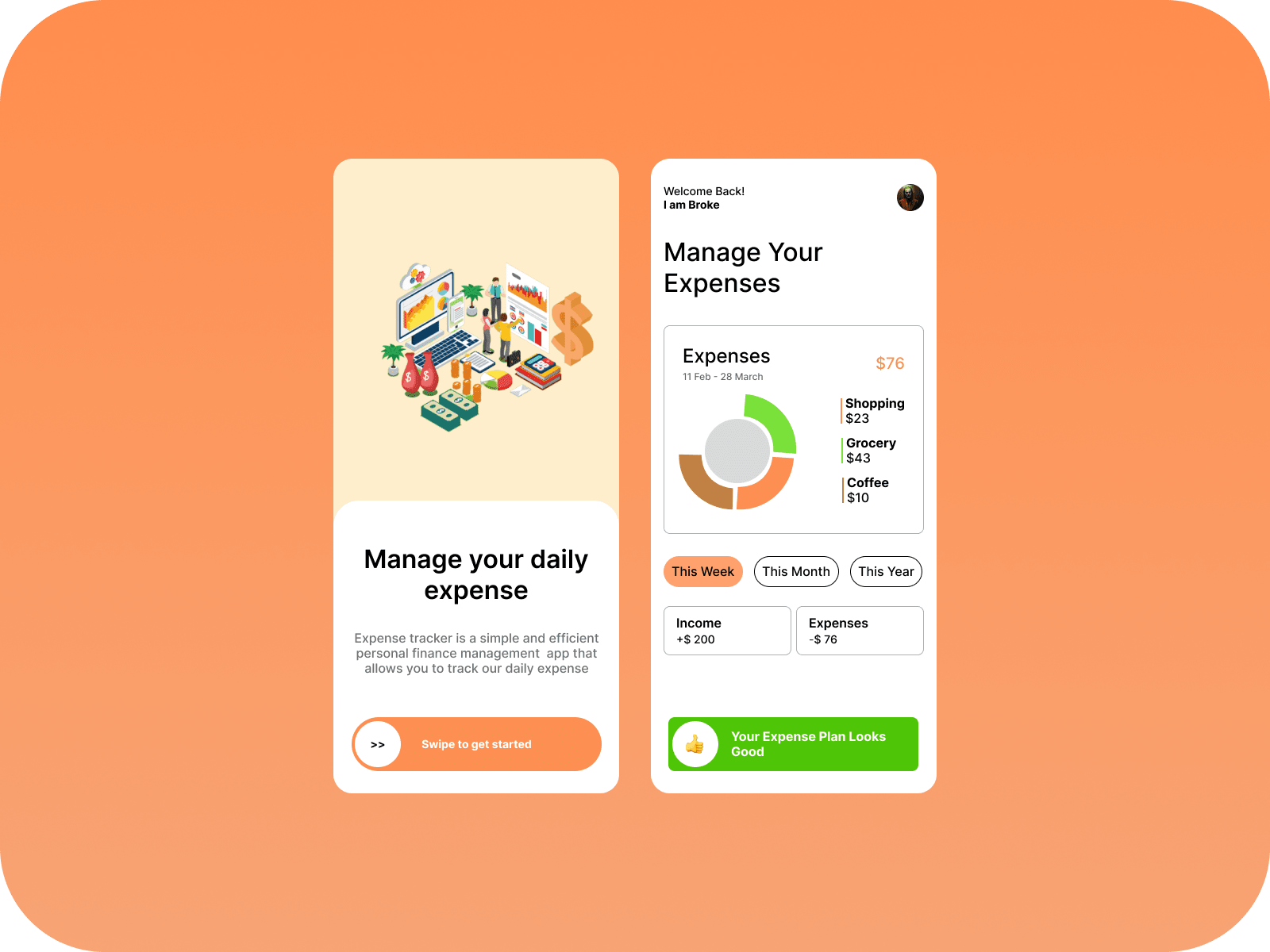 UI Design For a Sign up & Home page for a Expense Tracking App