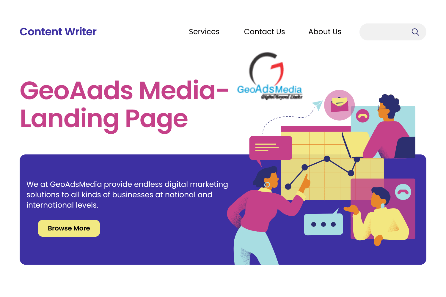 - Wrote captivating landing page content for https://geoadmedia.com/ showcasing why we're the best digital marketing company.