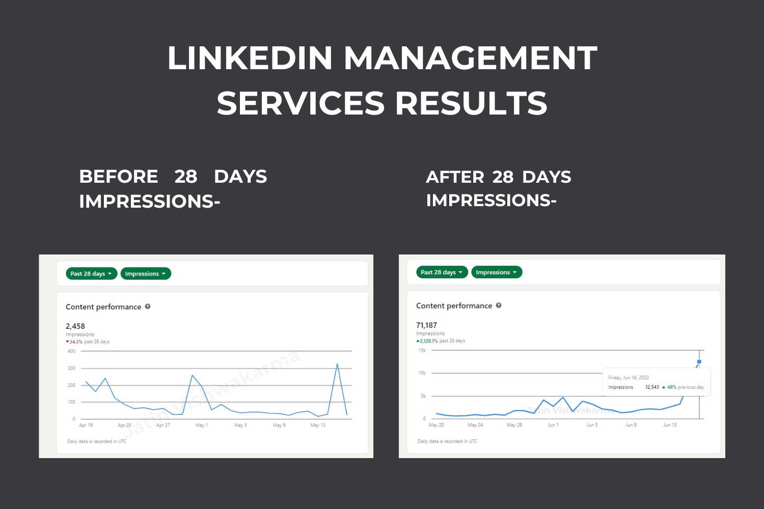 Case Study: How My Client Content Performance goes from 2,458(34.3%) Impressions to 71,187(2,128.1%) Impressions in just 30 days🚀