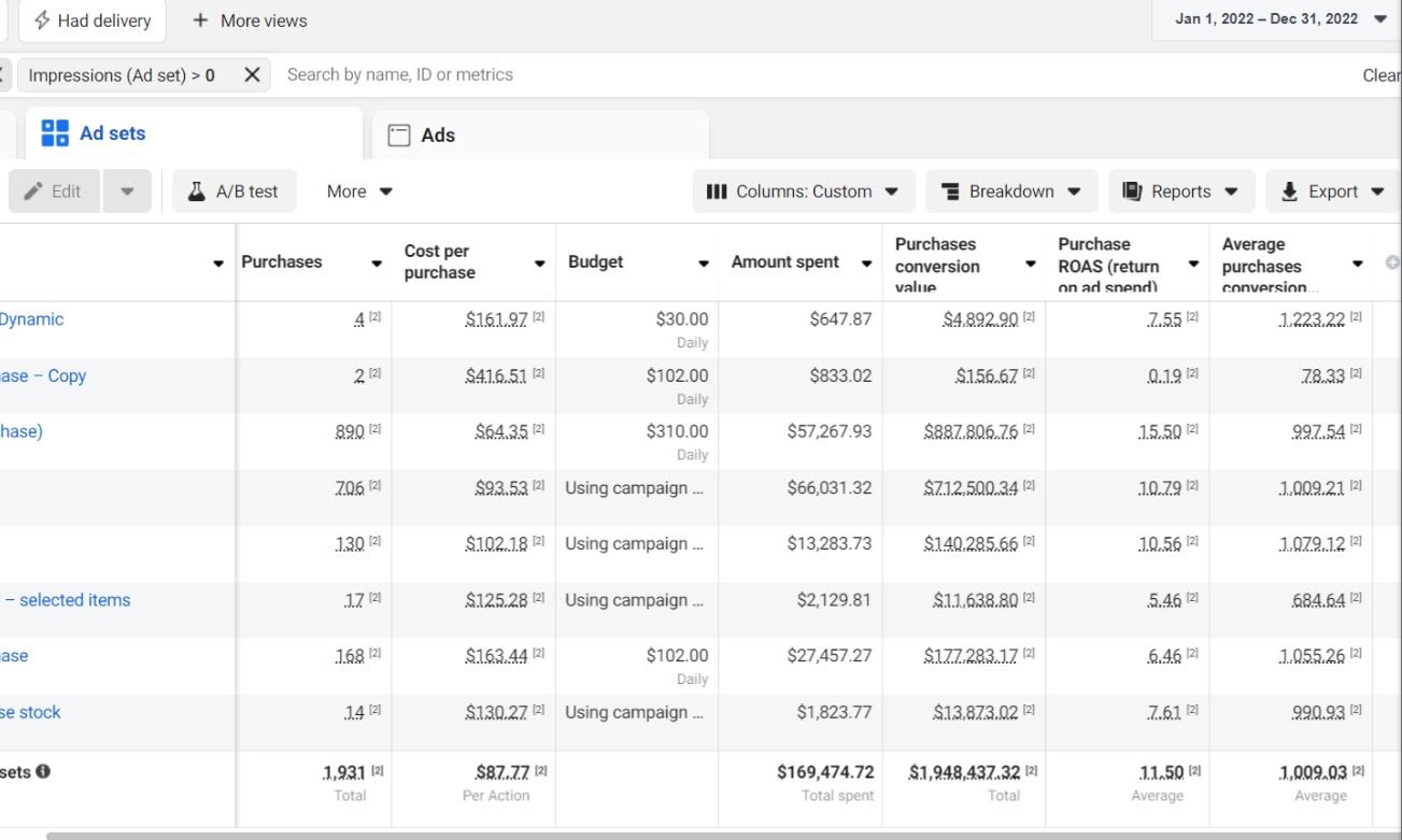 By spending $169K on meta ads got $1.9M of sale with 11.5 ROAS for an USA ecommerce store.