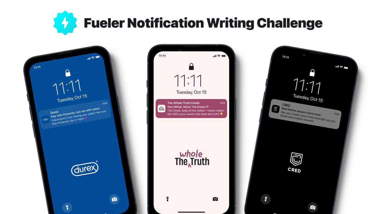 Write 3 notifications each for 3 brands from the list. I went with Cred, Durex, and The Whole Truth Foods—because why not cover money, safety, and snacks all in one go?