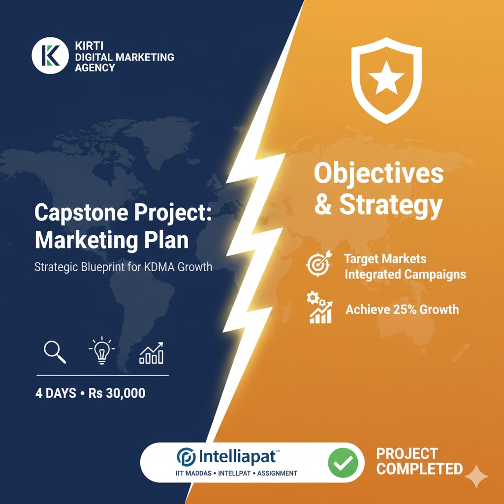 | Context/Client | KIRTI DIGITAL MARKETING AGENCY - Completed as a strategic “Capstone Project” assignment for the Advanced Digital Marketing and Analytics Course by Intellipaat in collaboration with IIT, Madras. |