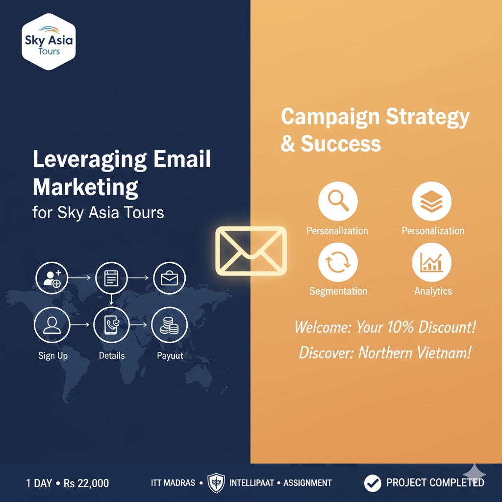 | Client/Organization | Sky Asia Tours - Completed as an assignment "Leveraging Email Marketing for Sky Asia Tours" for the Advanced Digital Marketing and Analytics Course by Intellipaat in collaboration with IIT, Madras. |