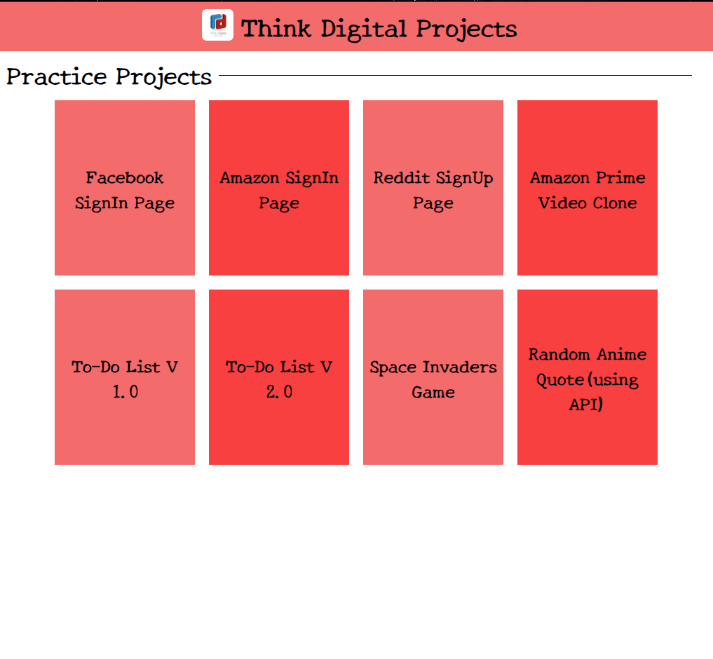 A Collection of Practice projects I built as a web developer recruits under Think-Digital, SRM.