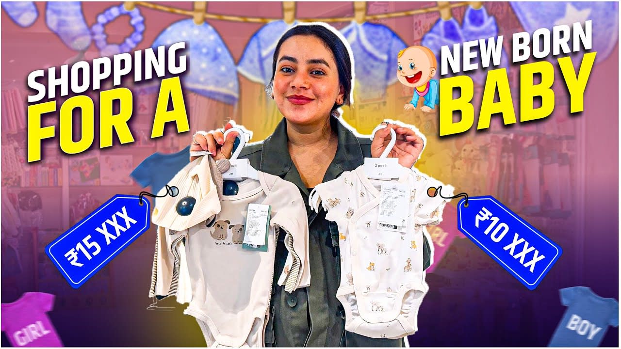 Price tags βΉπΈ were added to both outfits to create a visual comparison and add a sense of value. The soft, pastel background and baby boy/girl clothes in the corners complete the baby-shopping vibe ππΌ, making the thumbnail both fun and clickable! β