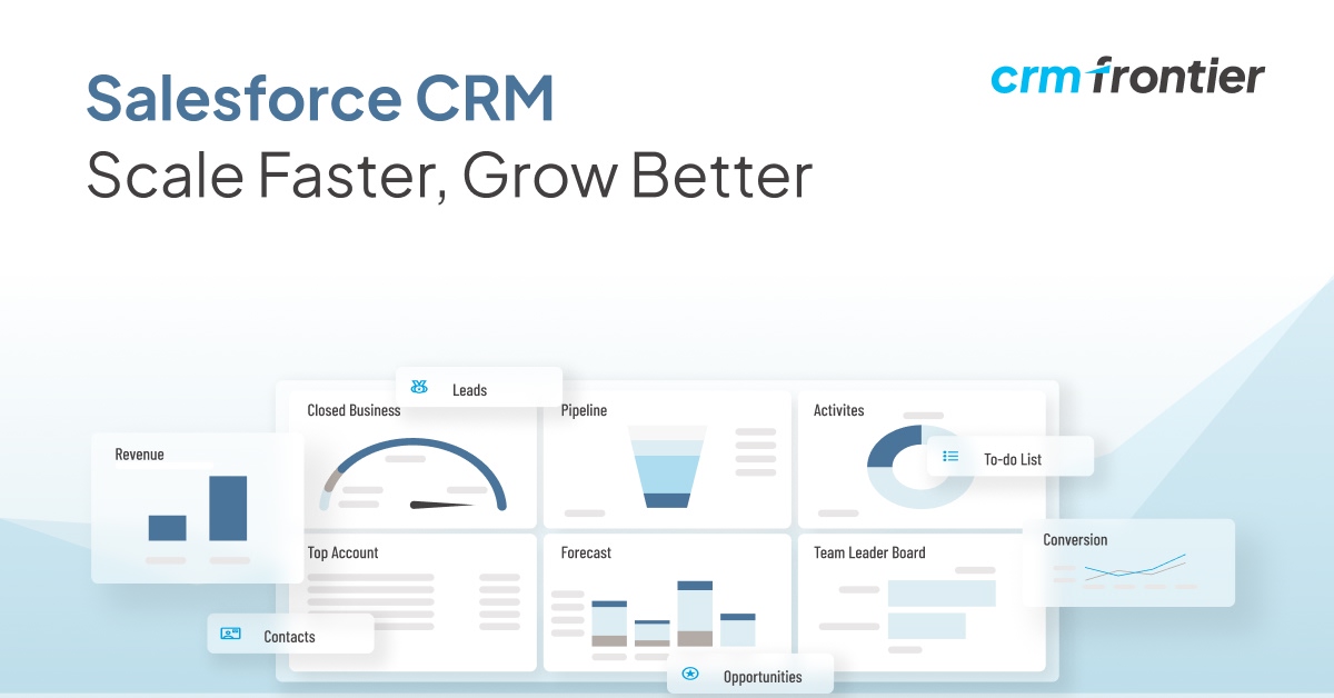 CRM Frontier is a trusted Salesforce consulting and implementation partner in USA, offering expert solutions to optimize your business processes and drive success with Salesforce CRM. Contact us today!