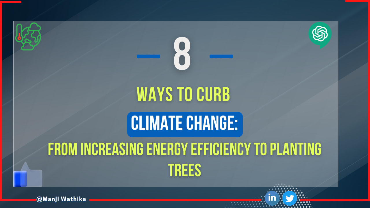 Curbing climate change requires reducing greenhouse gas emissions and transitioning to clean energy sources. Some ways to do this include: Increasing energy efficiency: Implementing energy-efficient practices and technologies can significantly reduce energy consumption and greenhouse gas emissions.