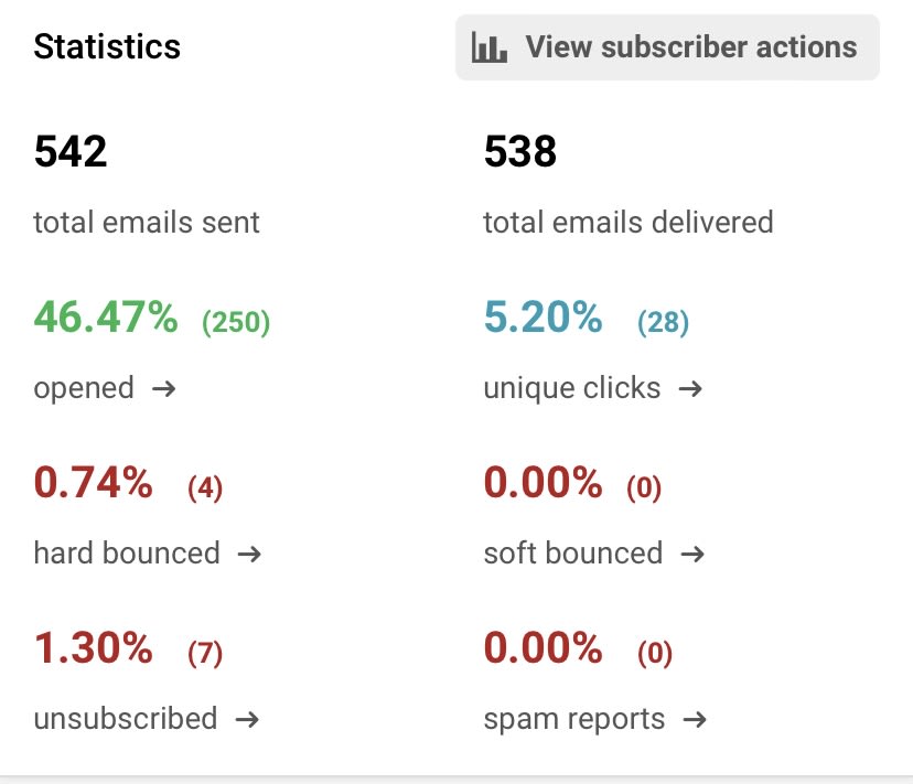 Results: I was able to get an average of 46.47 respons rate on the last email I sent for the sales campaign.