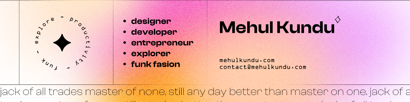 Hi! There. I am Mehul Kundu. Freelancing UI UX designer and Frontend developer. Have a idea in mind hire me as UI/UX designer. I post a video everyday on YouTube. Side hustle Bohon.co . Gener