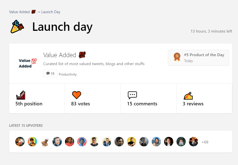 Value Added 💯 ranked at #5 on Product Hunt