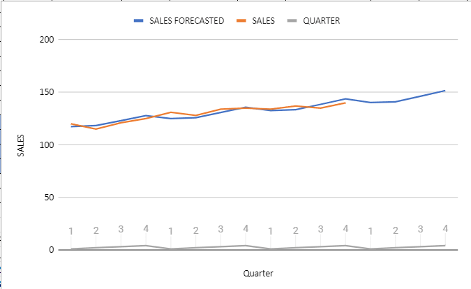 The Quarterly Sales Forecasting Excel file provides the following outcomes: