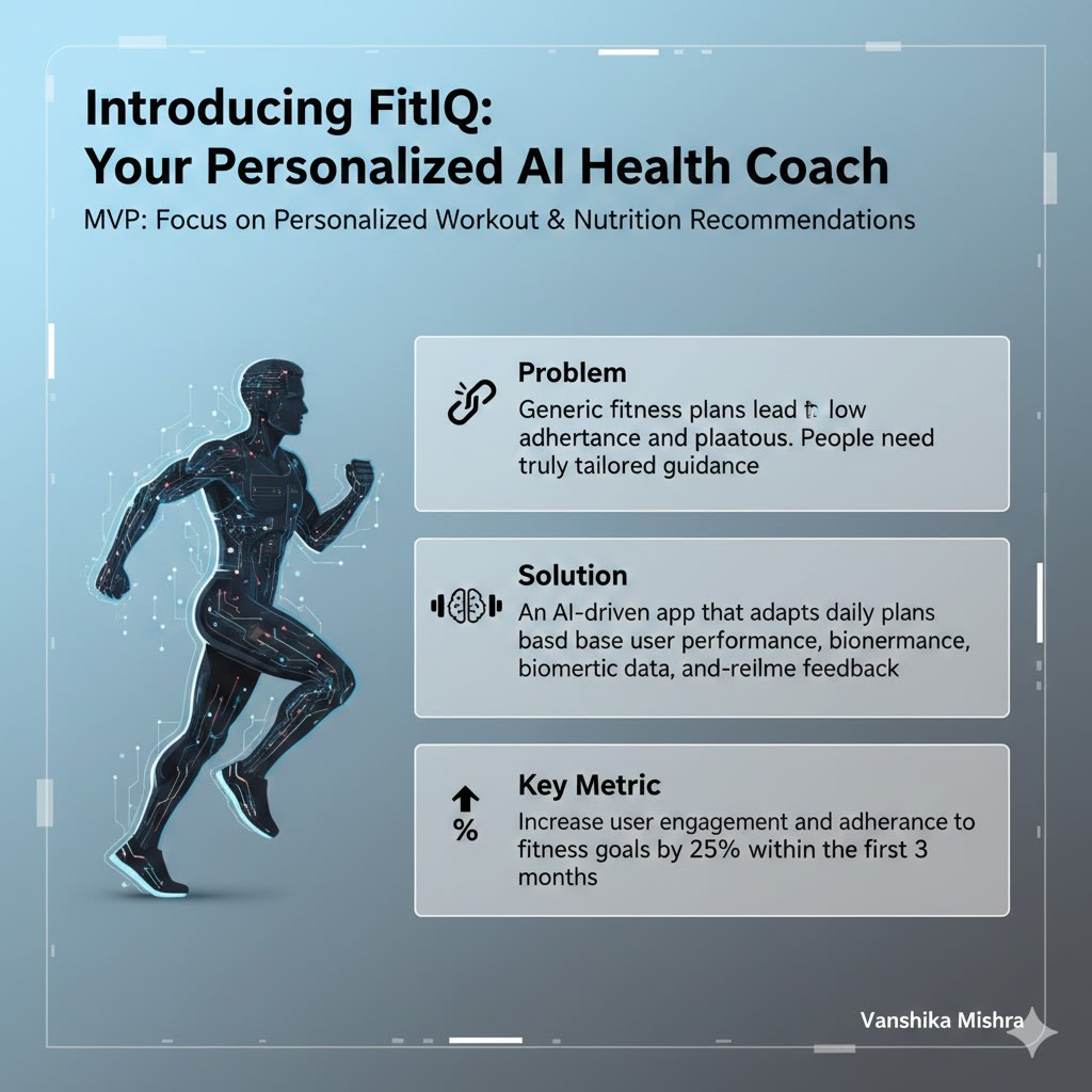 The MVP of our AI-powered health and fitness app is designed to provide a simple, engaging, and reliable experience for users on both iOS and Android. It includes basic user profile creation and goal setup, AI-generated personalized plans for workouts, nutrition, and recovery, and goal tracking with visual progress dashboards. The app focuses on an intuitive, easy-to-navigate interface and ensures stability and data security, while delivering motivational nudges and empathetic feedback to encourage consistent healthy habits.