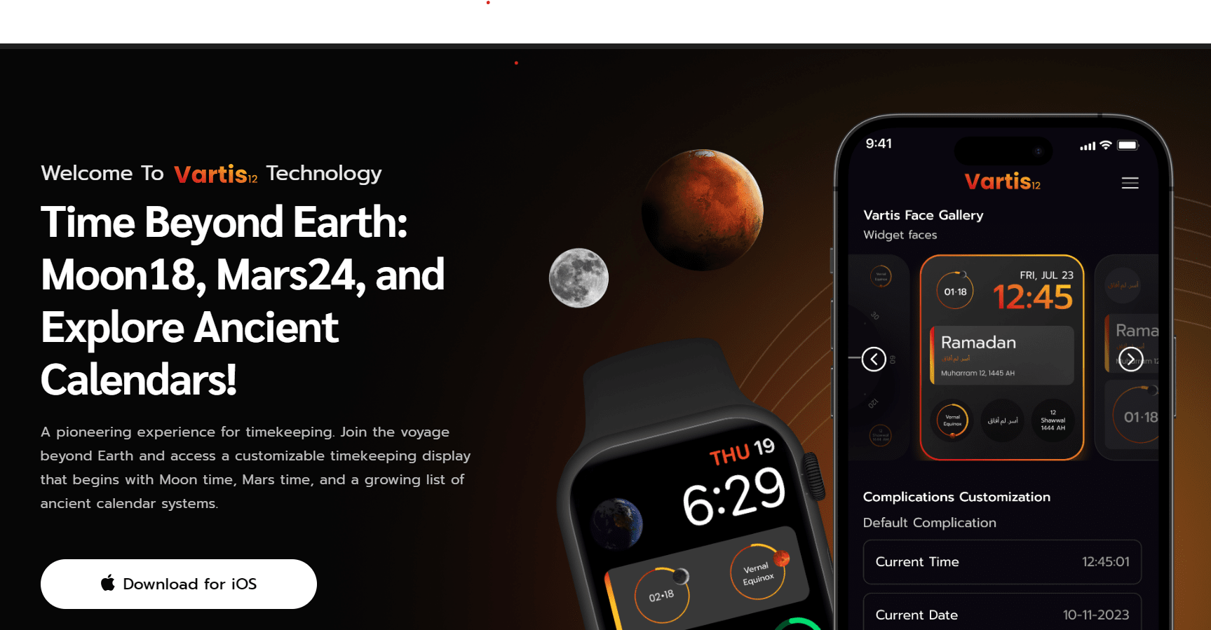 Develop the Vartis iOS app and Apple Watch faces to provide innovative timekeeping solutions for the Moon and Mars, integrating ancient and modern calendar systems.