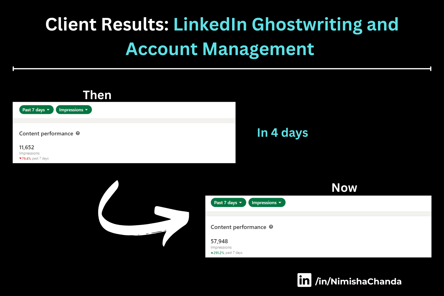 Process: I created his ideal client persona, researched extensively for his target audience and their pain points, created a content strategy focusing on 3 content pillars, created valuable content in the storytelling format, and engaged with his target audience.