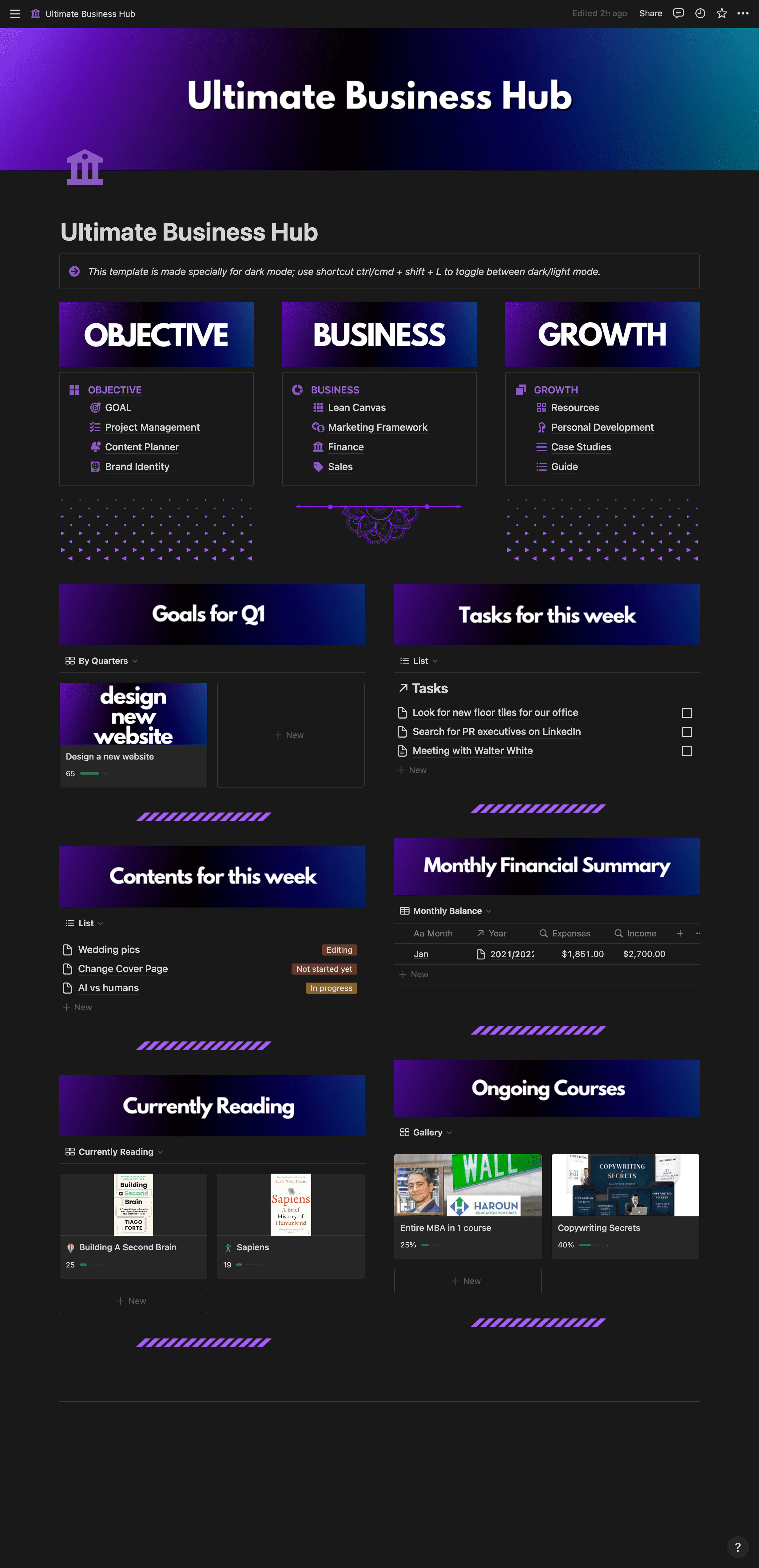 This is a Notion Business Hub I built for a client on Fiverr for reselling purposes.