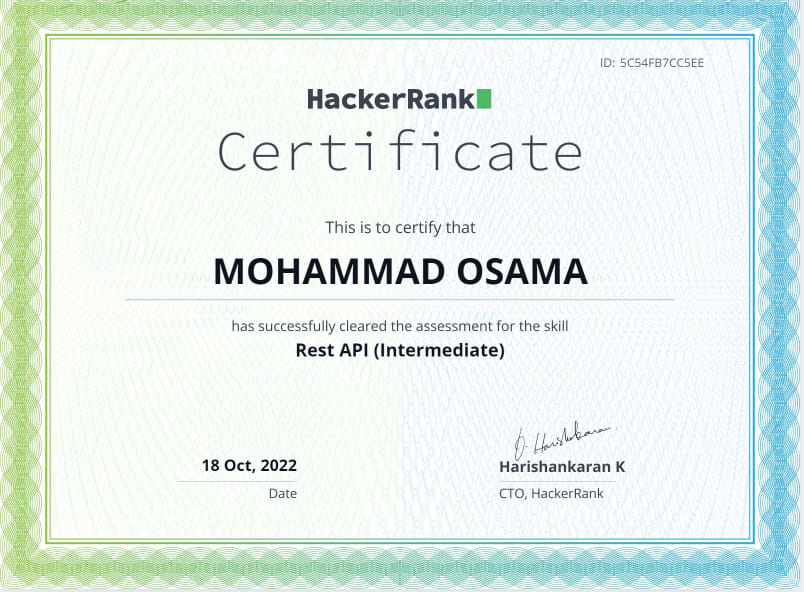 I’m happy to share that I’ve obtained a new certification: Rest Api from HackerRank!