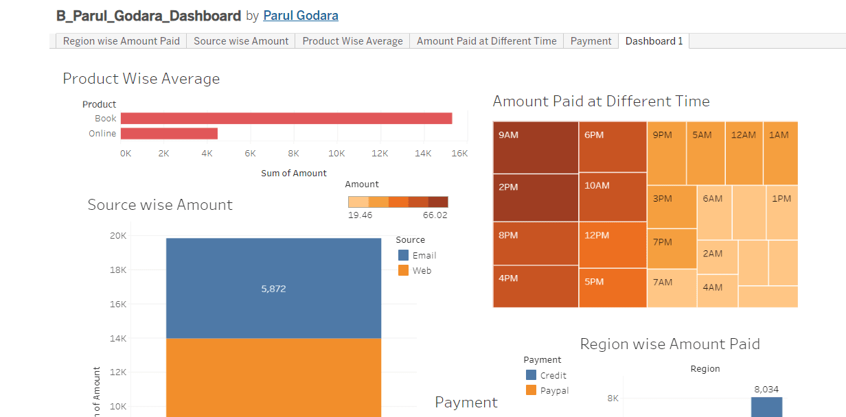 This dashboard analyzes transaction data, showing average payment amounts by product type, source, region, and time. Key insights include peak transaction hours, region-based payment trends, and preferred payment methods, providing a clear view of customer payment behavior.I made it using tableau, it took me 30 minutes to make this.